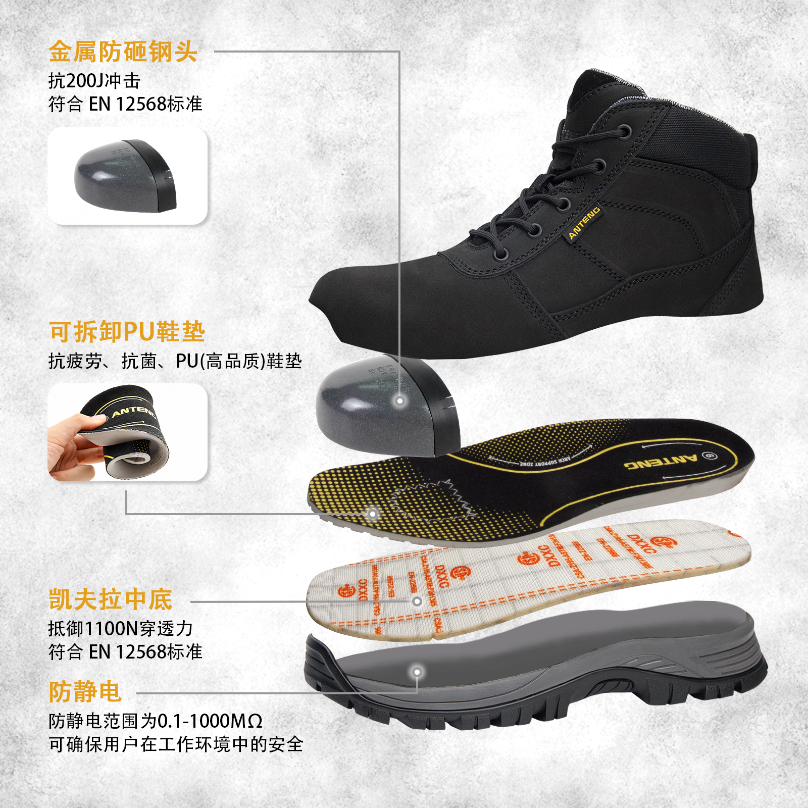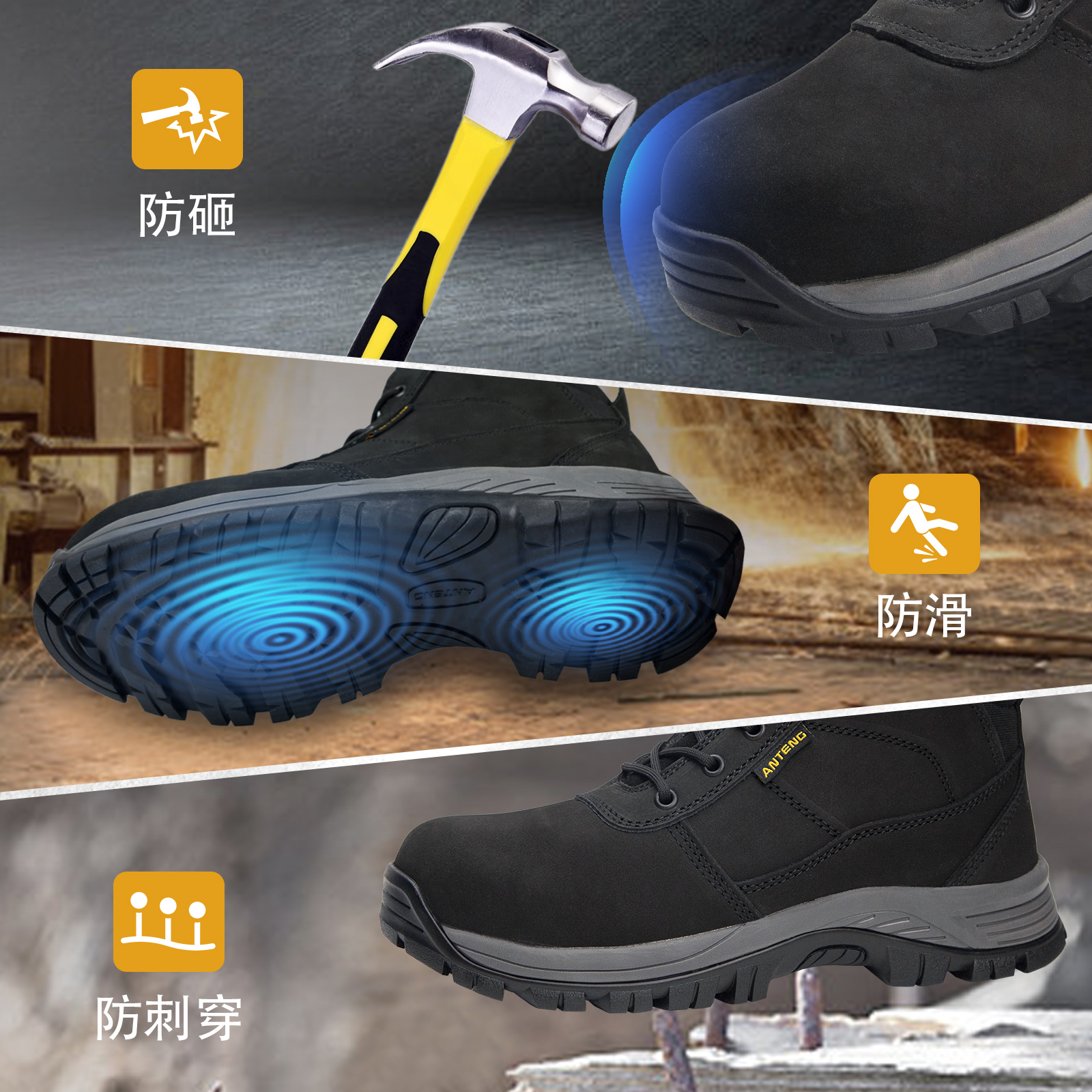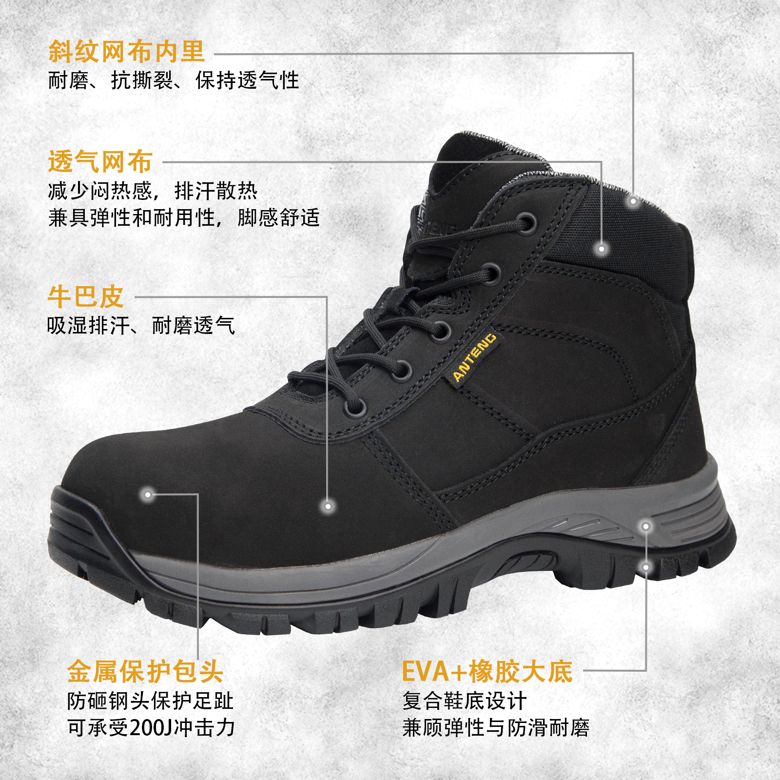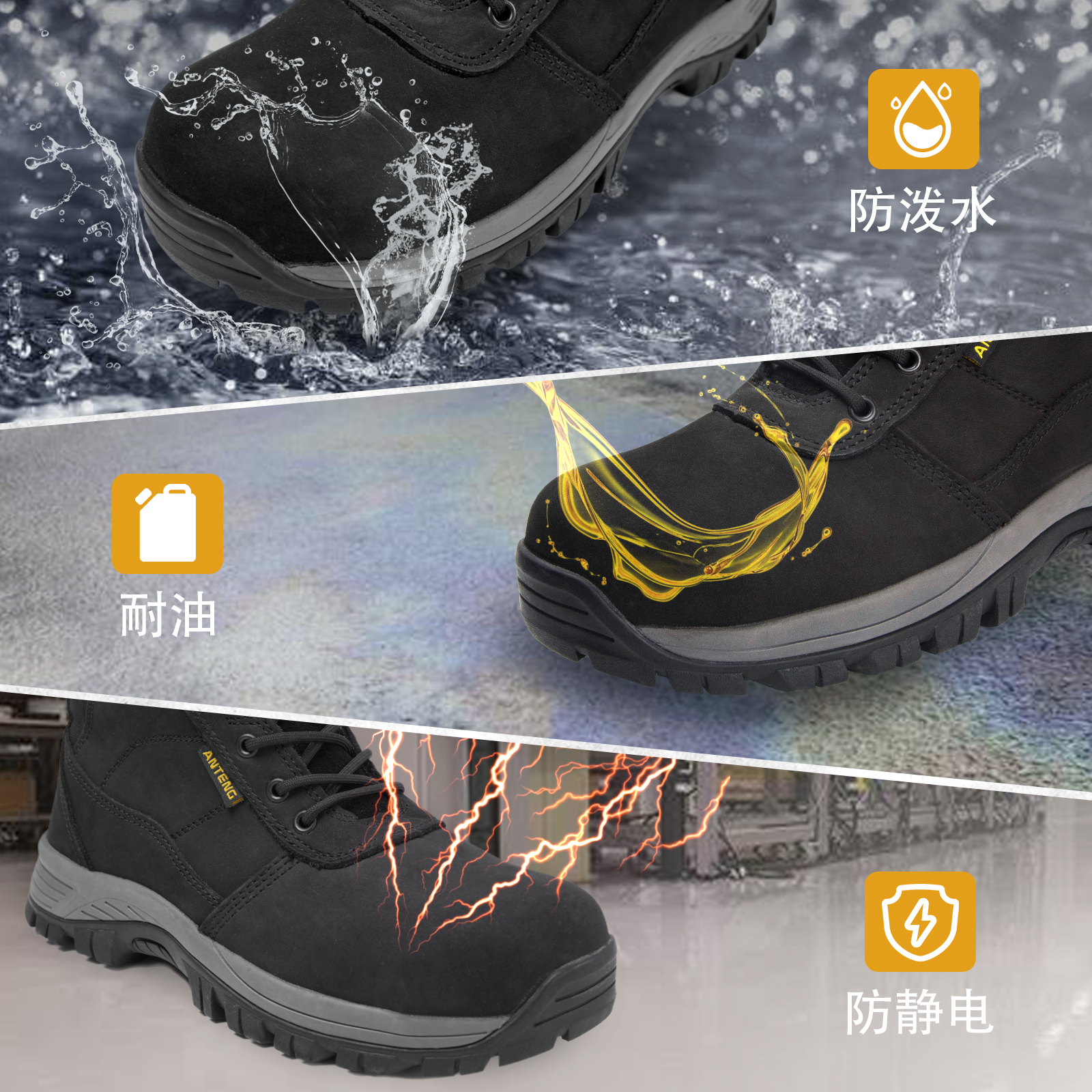 ANTENG 黑色防滑 水牛皮保护足趾防刺穿抗静电防水工作靴安全靴