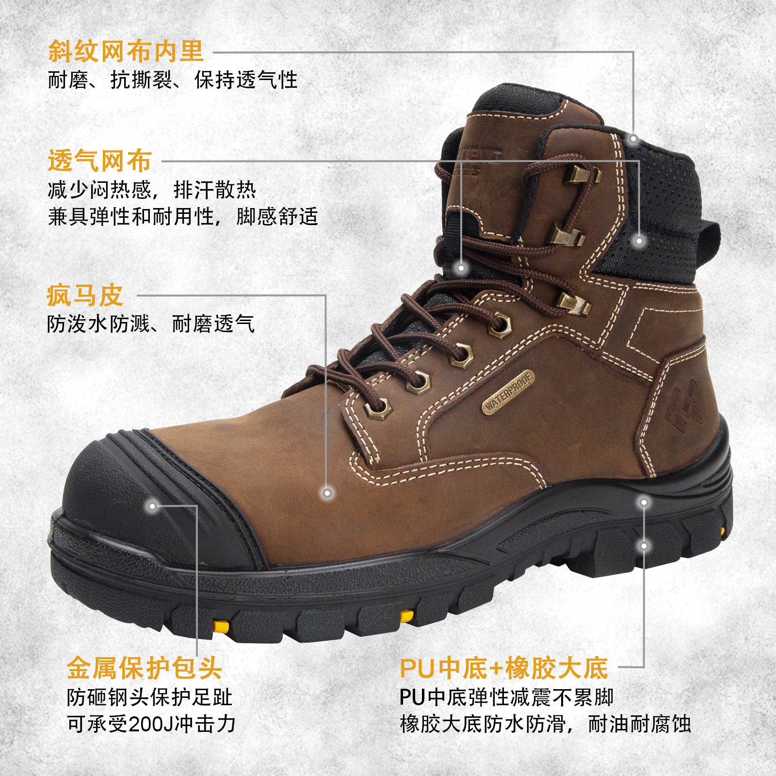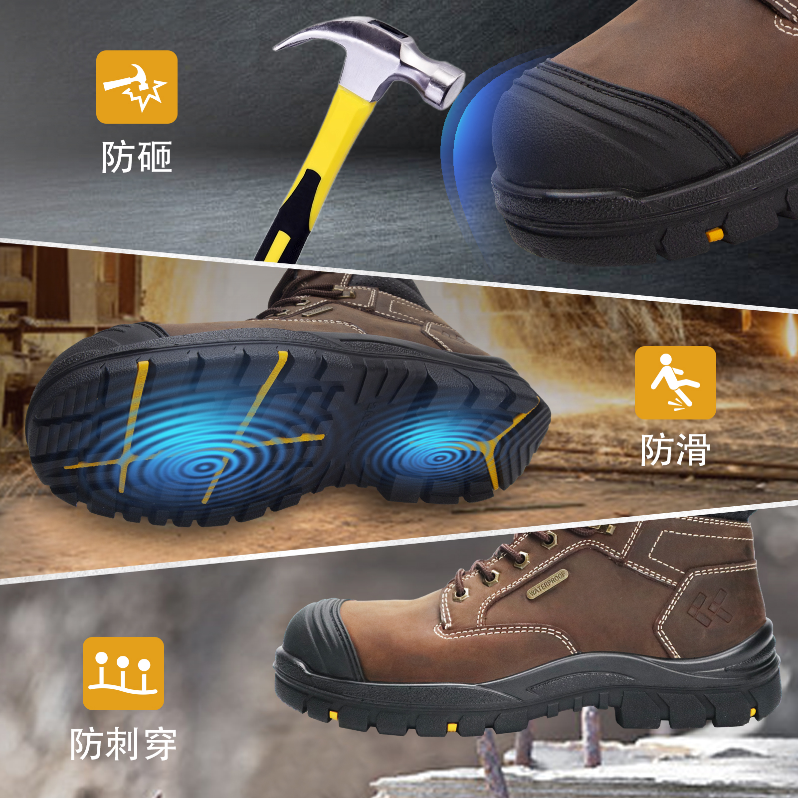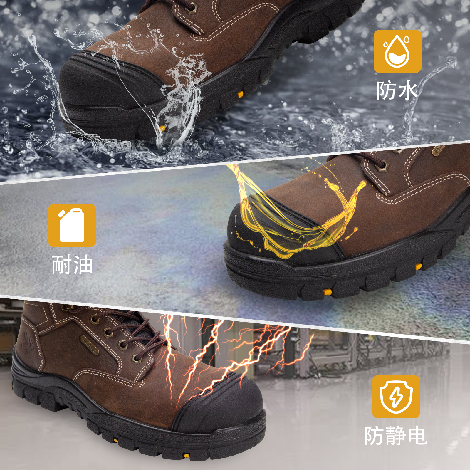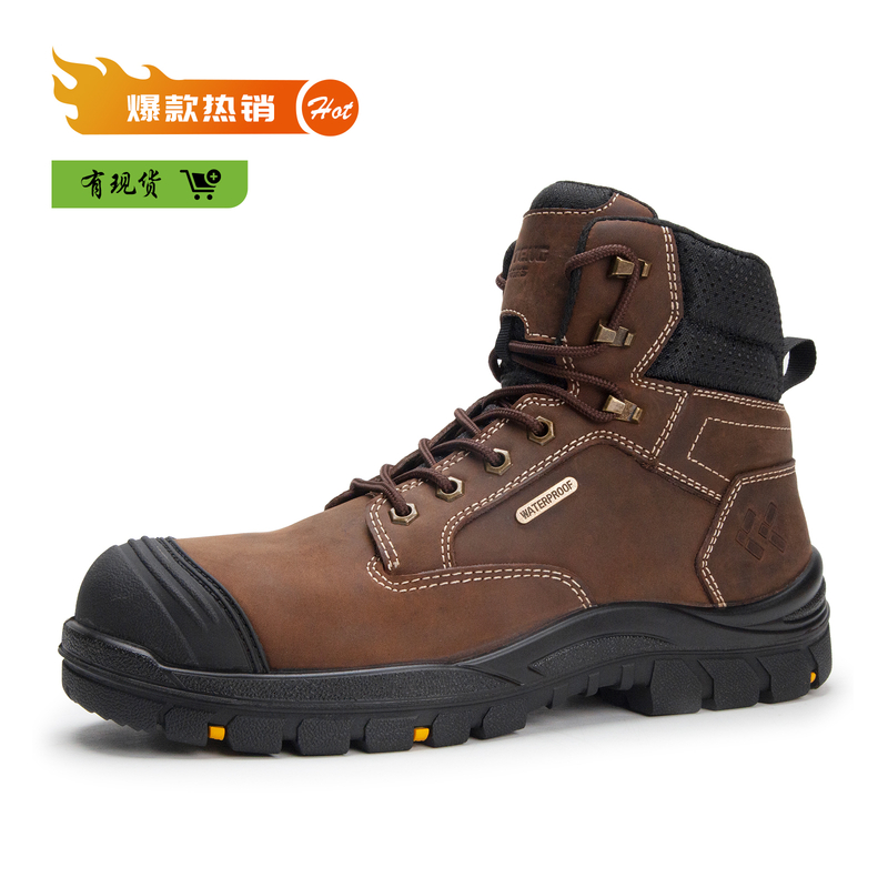 ANTENG 棕色防滑 水牛皮保护足趾防刺穿抗静电防水工作靴安全靴