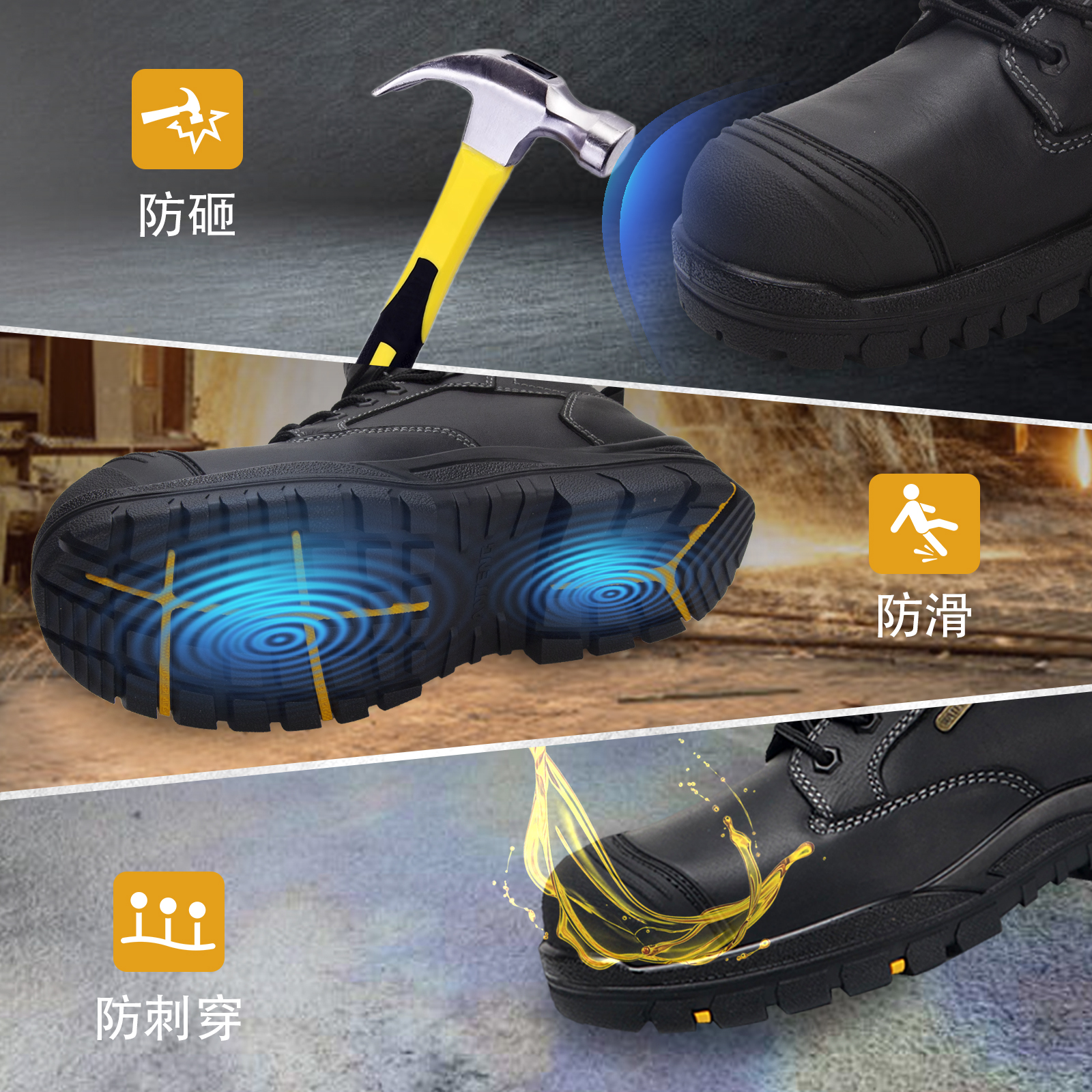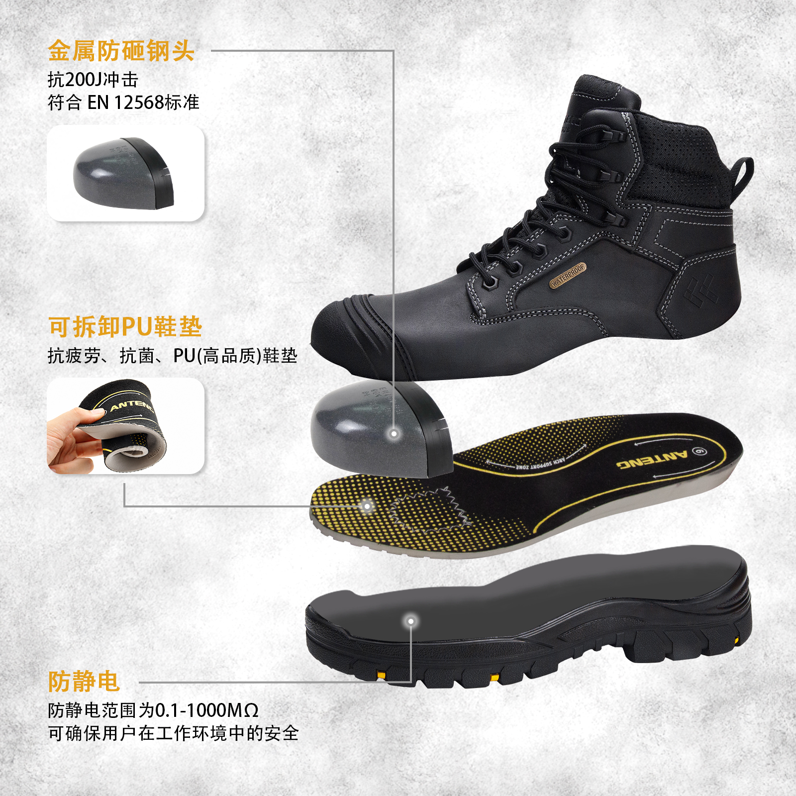 ANTENG 黑色防滑 水牛皮保护足趾防刺穿抗静电防水工作靴安全靴