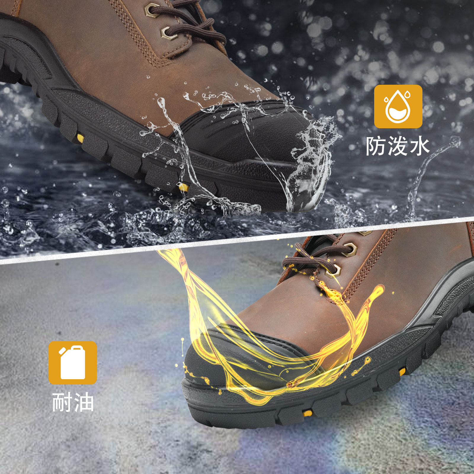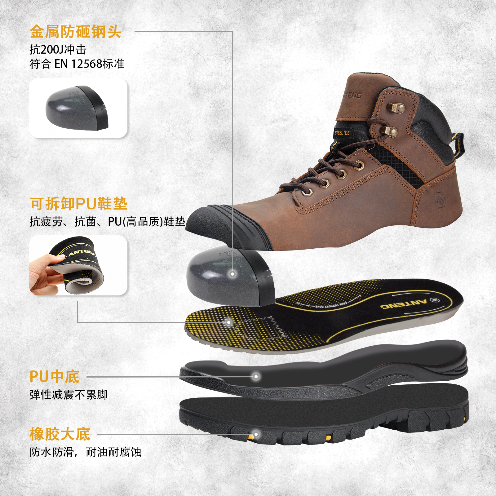 ANTENG男士防水工作靴真皮帮面橡胶大底防砸
