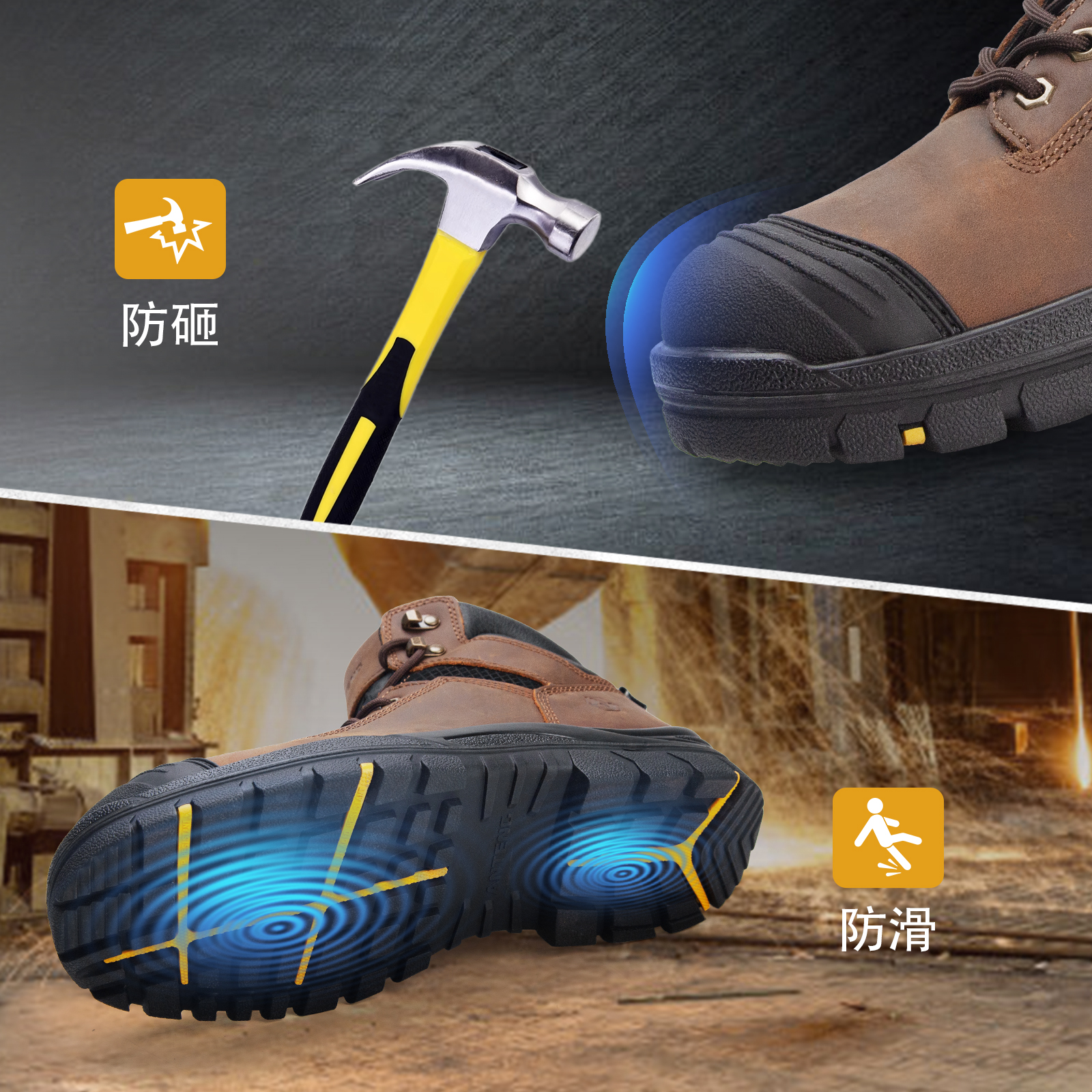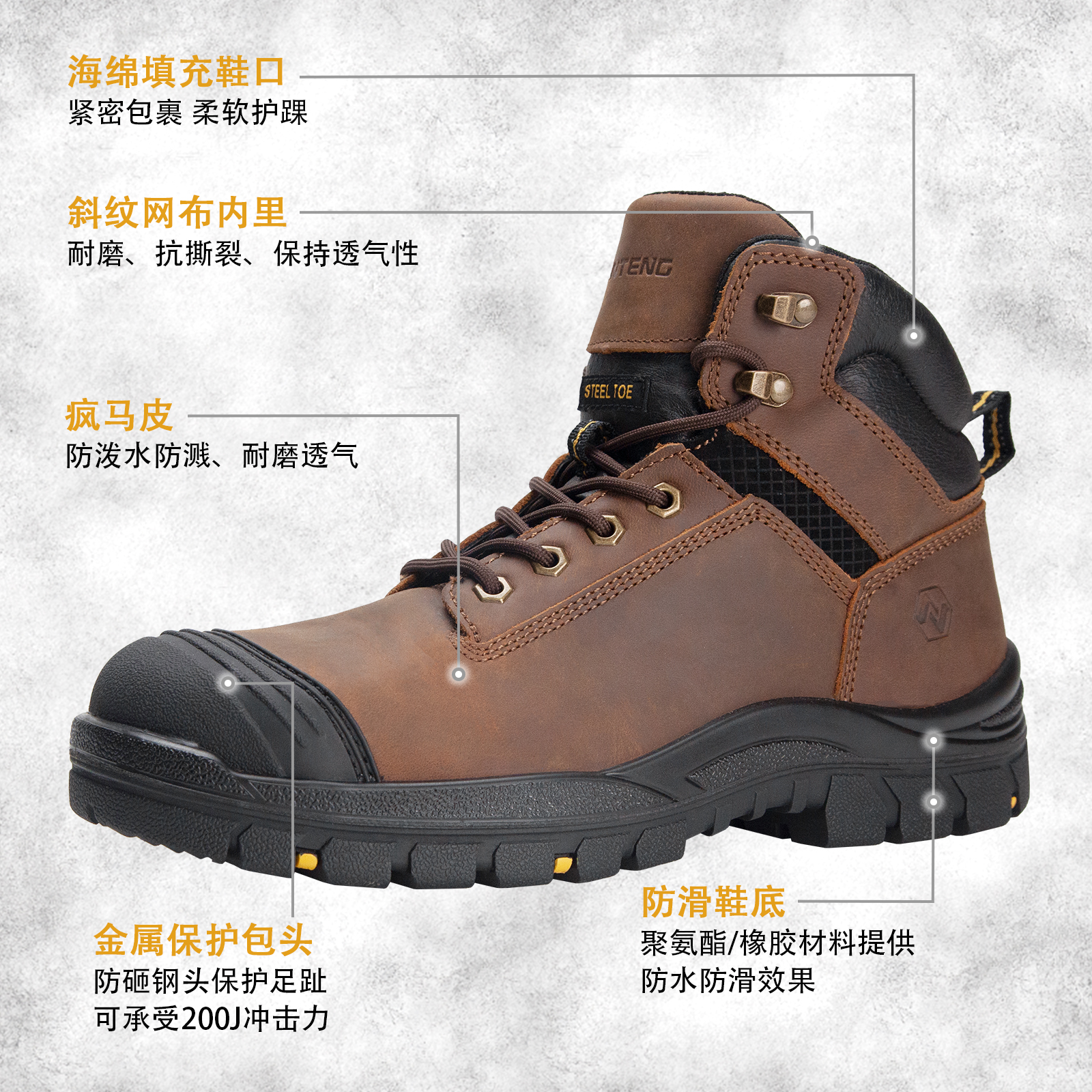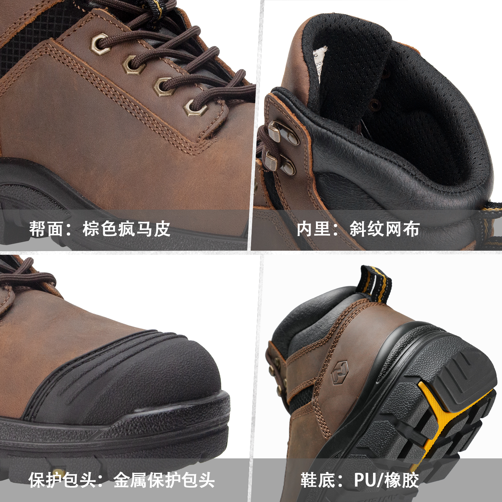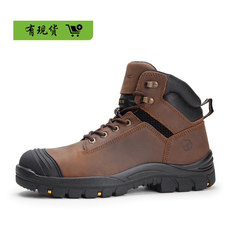 ANTENG 棕色防滑 水牛皮保护足趾防刺穿抗静电防水工作靴安全靴
