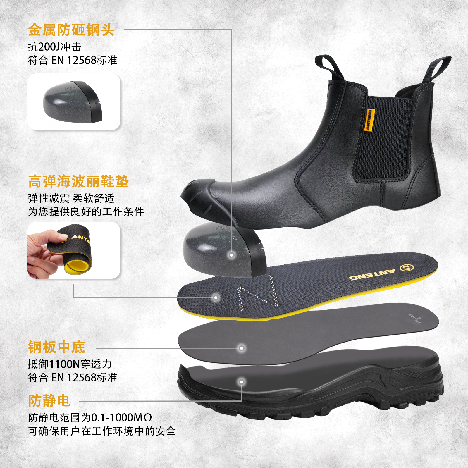 ANTENG男士防水工作靴真皮帮面橡胶大底 S3 ESD