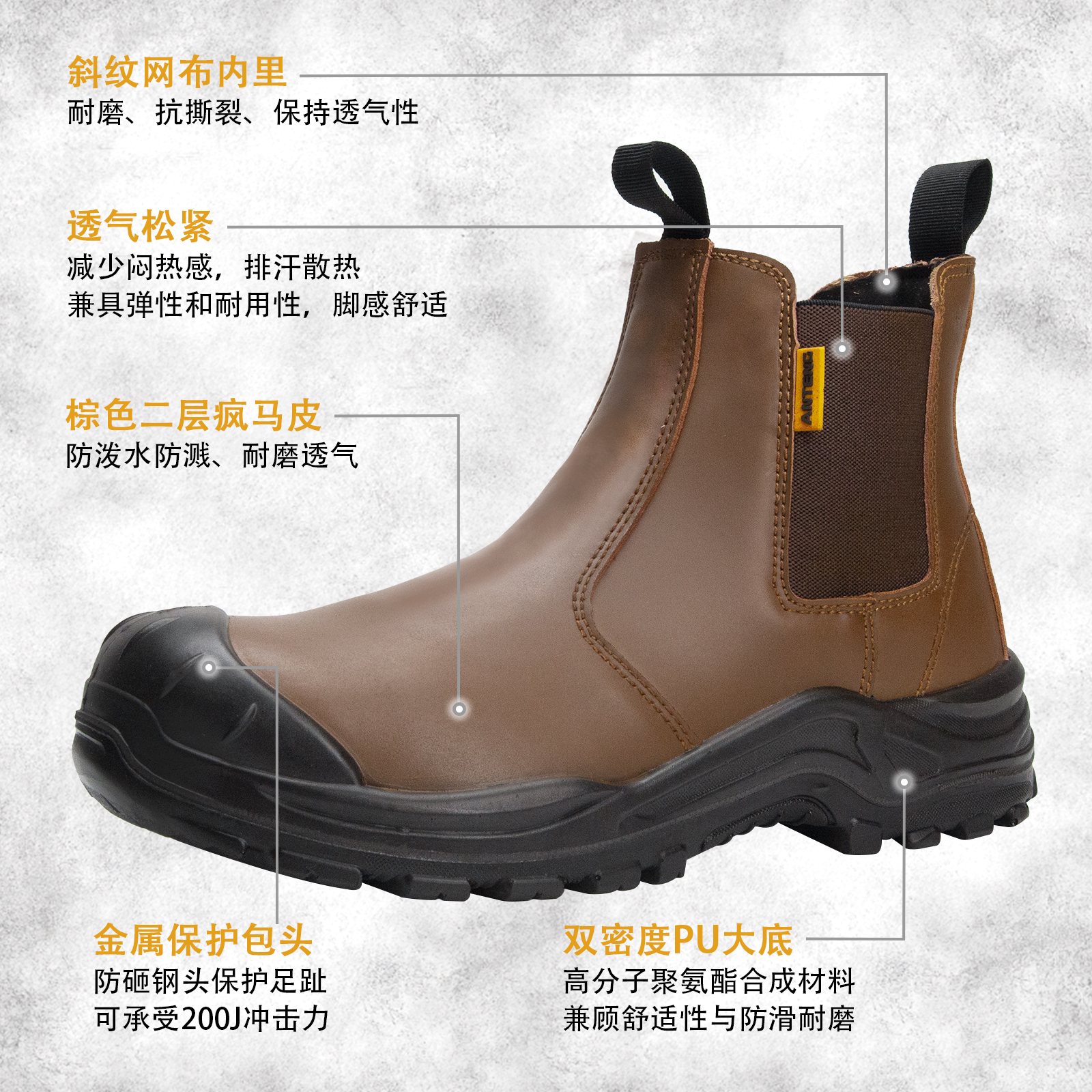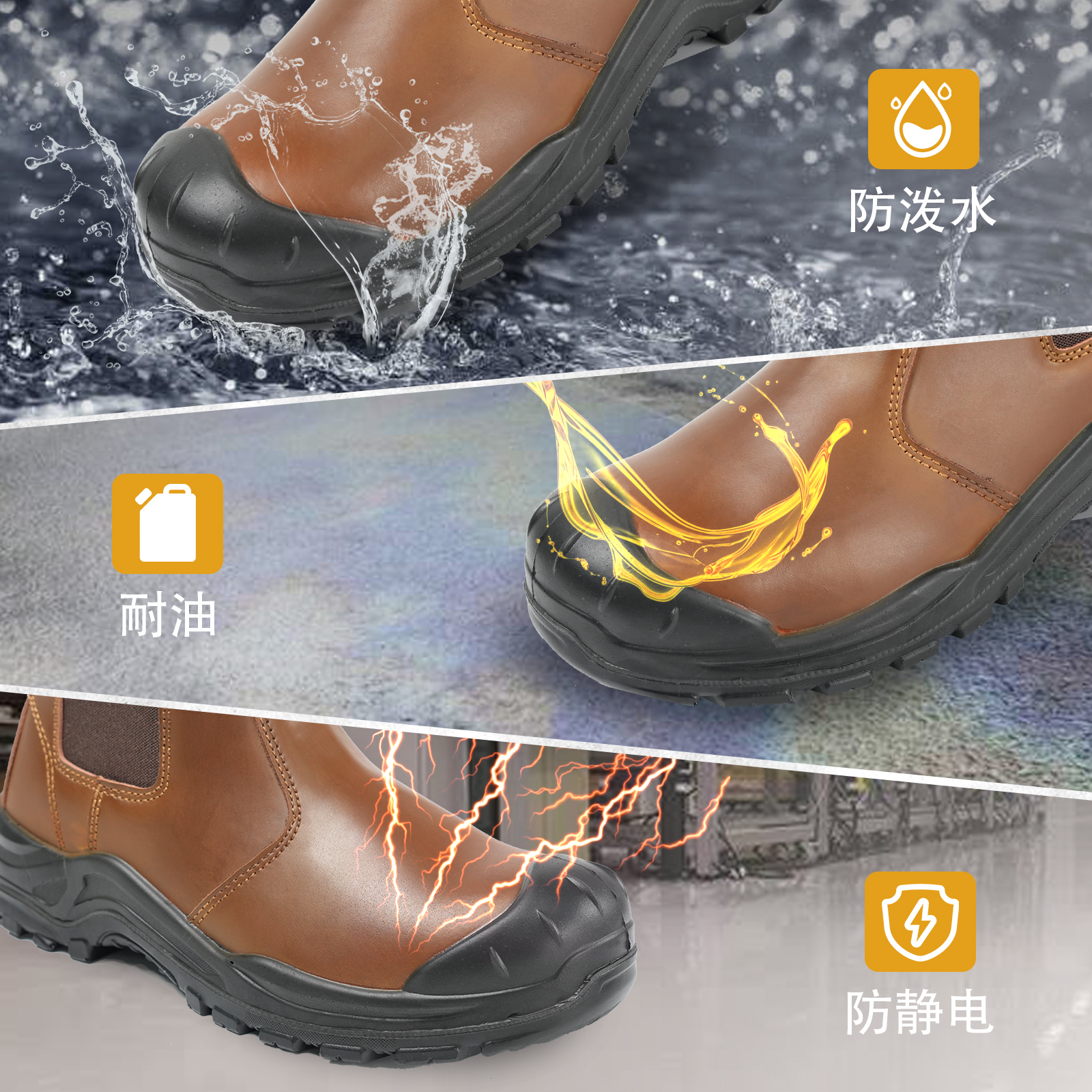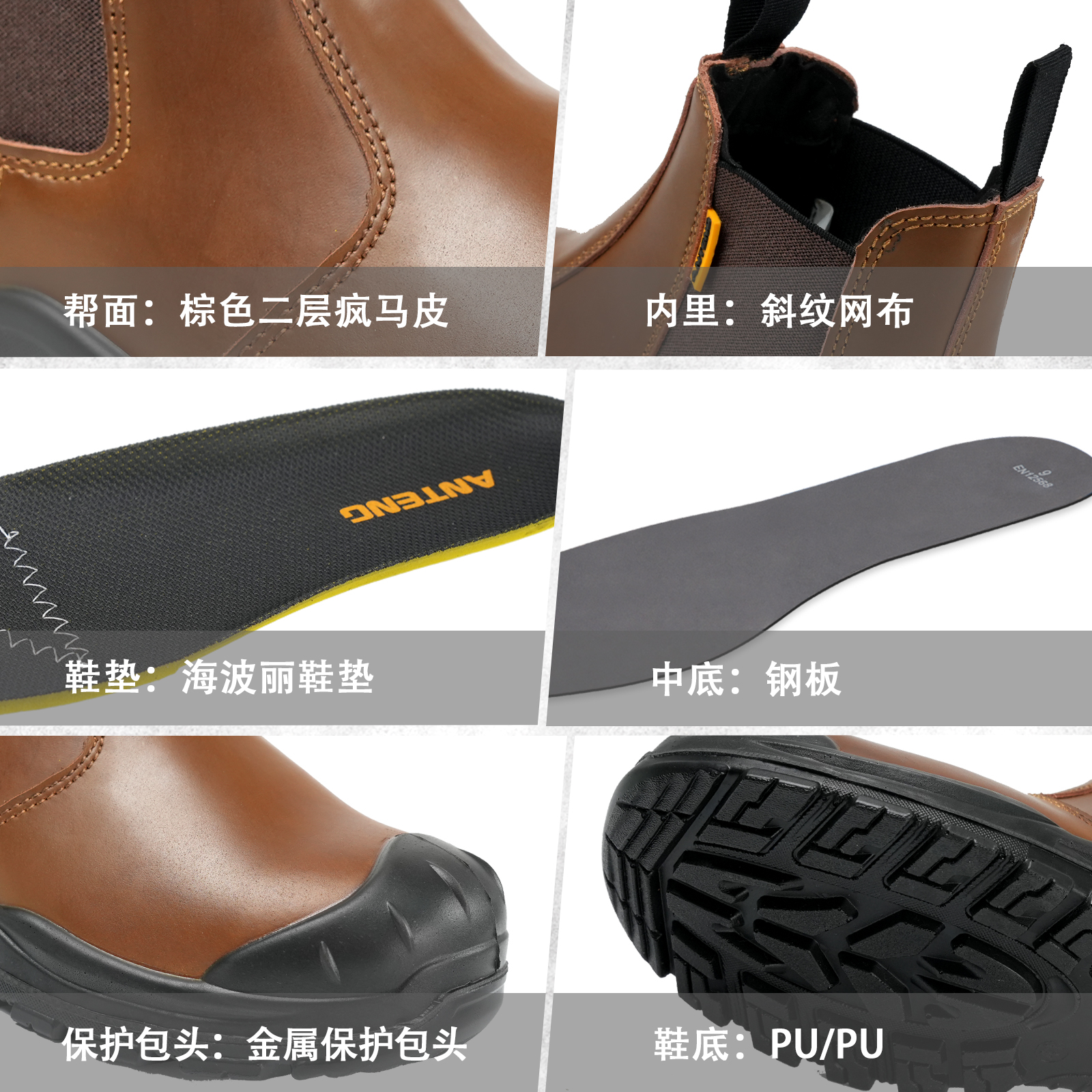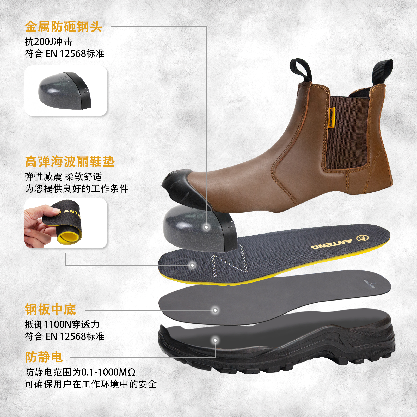 ANTENG 棕色防滑 水牛皮保护足趾防刺穿抗静电防水工作靴安全靴