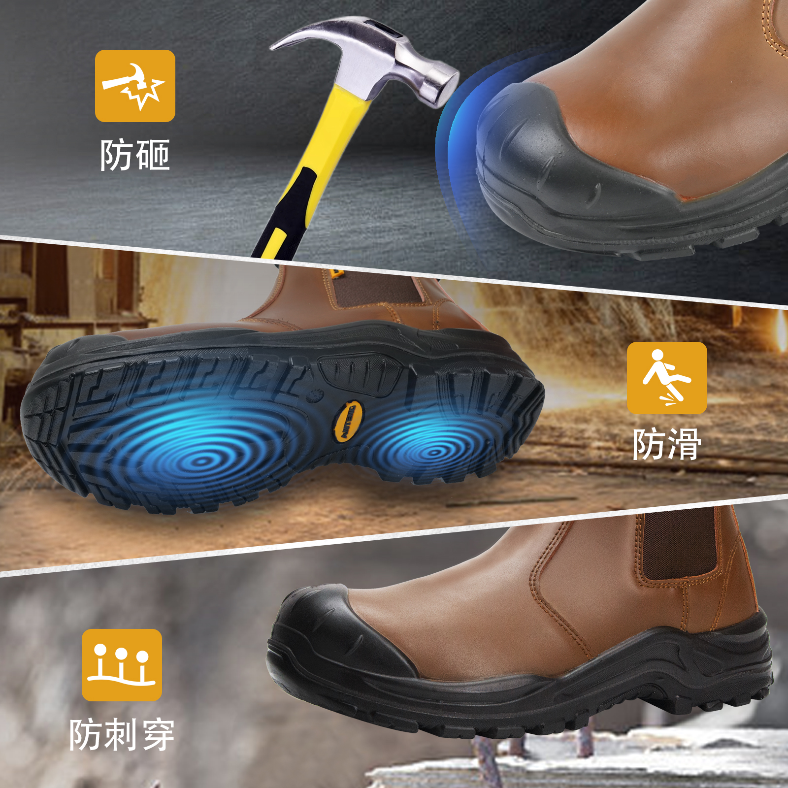 ANTENG 男士复合头工作靴真皮帮面橡胶大底 S1P