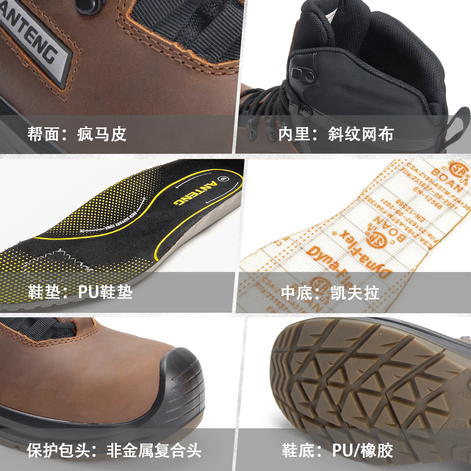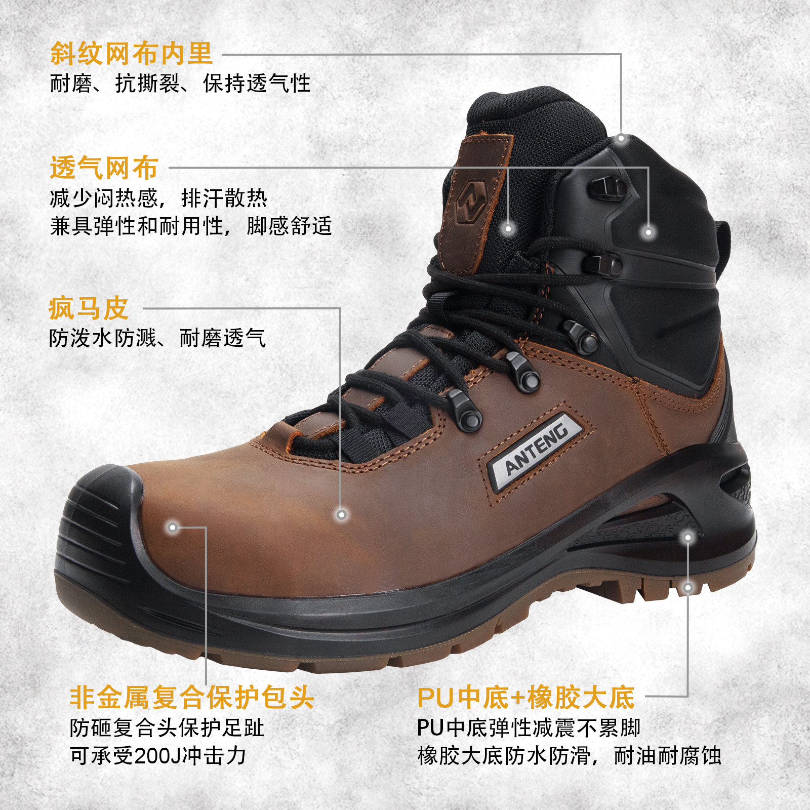 ANTENG高质量男士工作靴真皮帮面橡胶大底防砸防刺穿