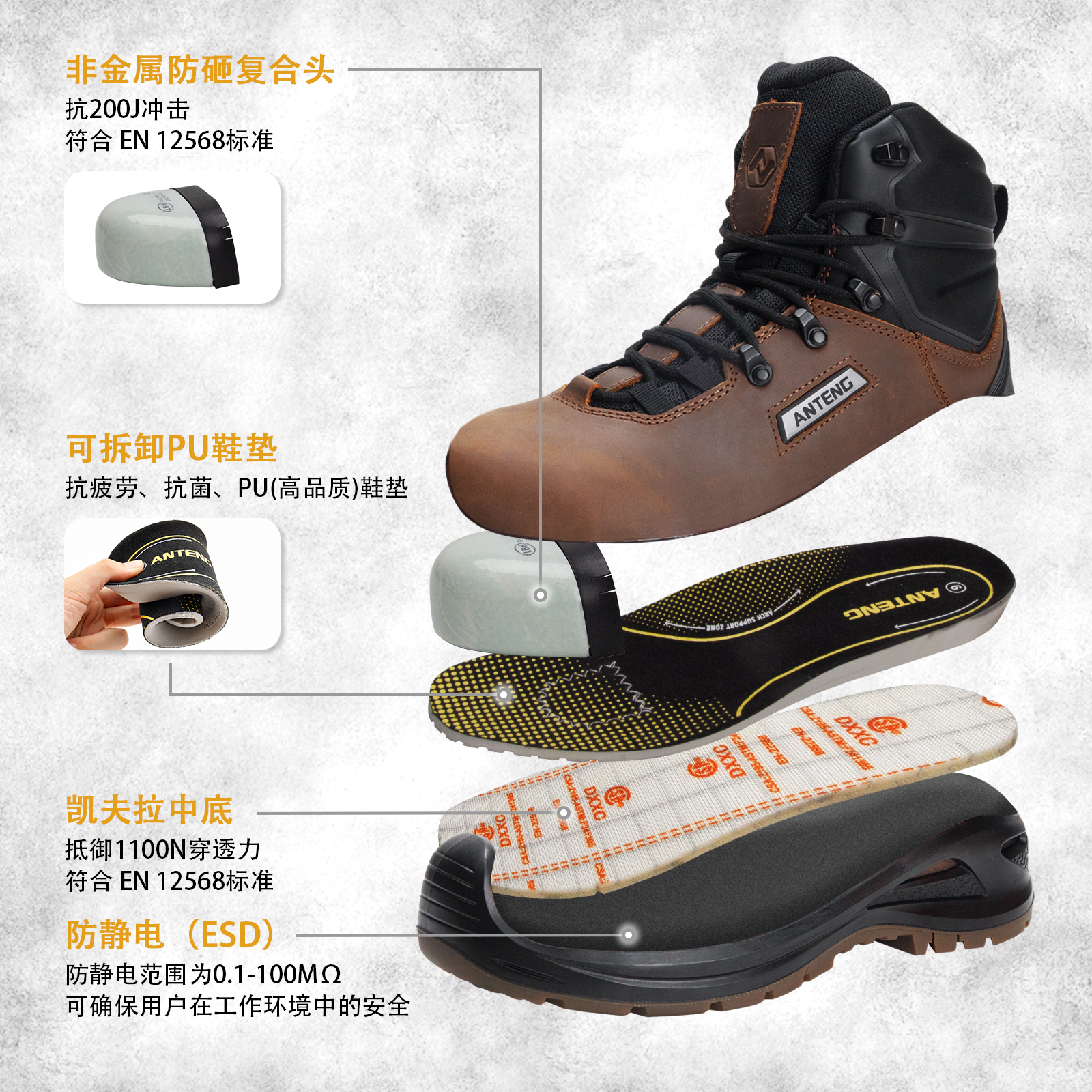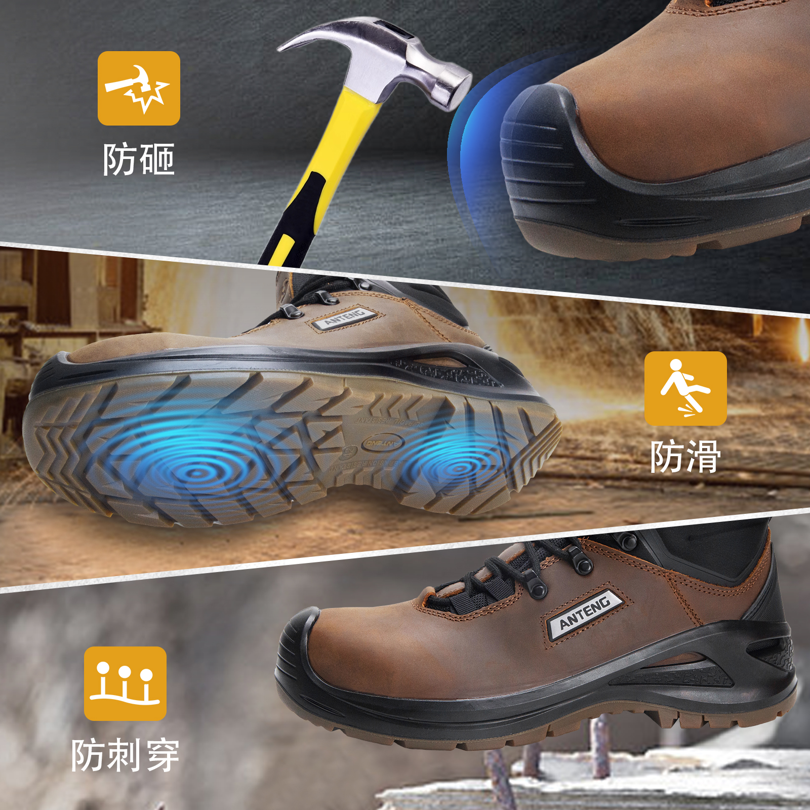 ANTENG男士防滑工作靴真皮帮面橡胶大底防砸电绝缘