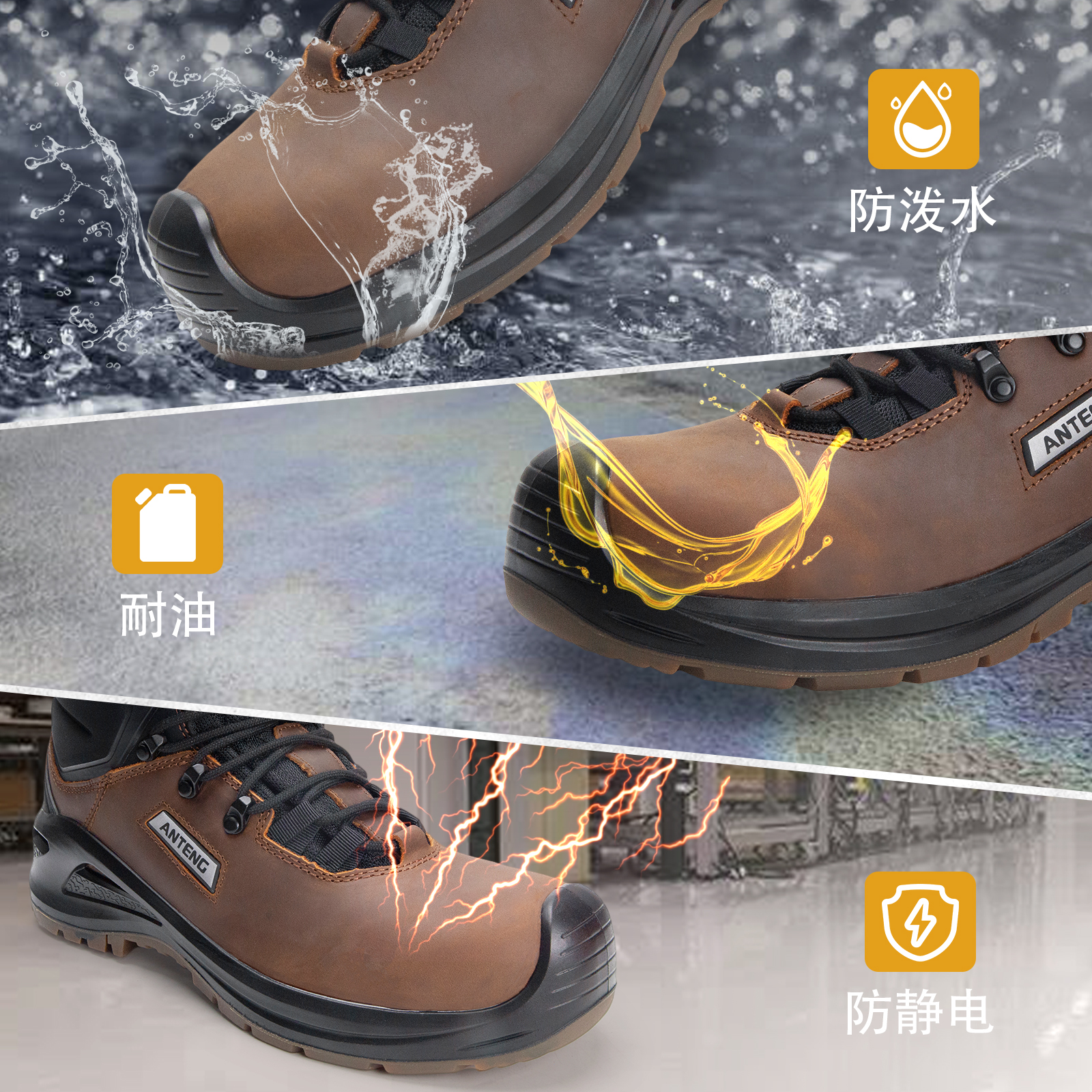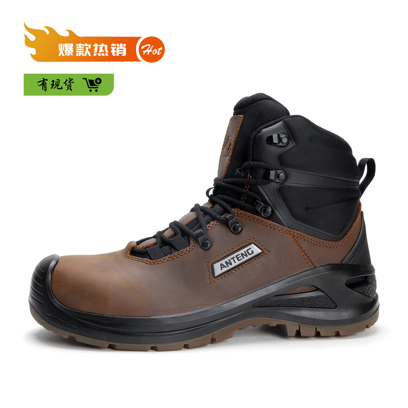 ANTENG 棕色防滑 水牛皮保护足趾防刺穿抗静电防水工作靴安全靴