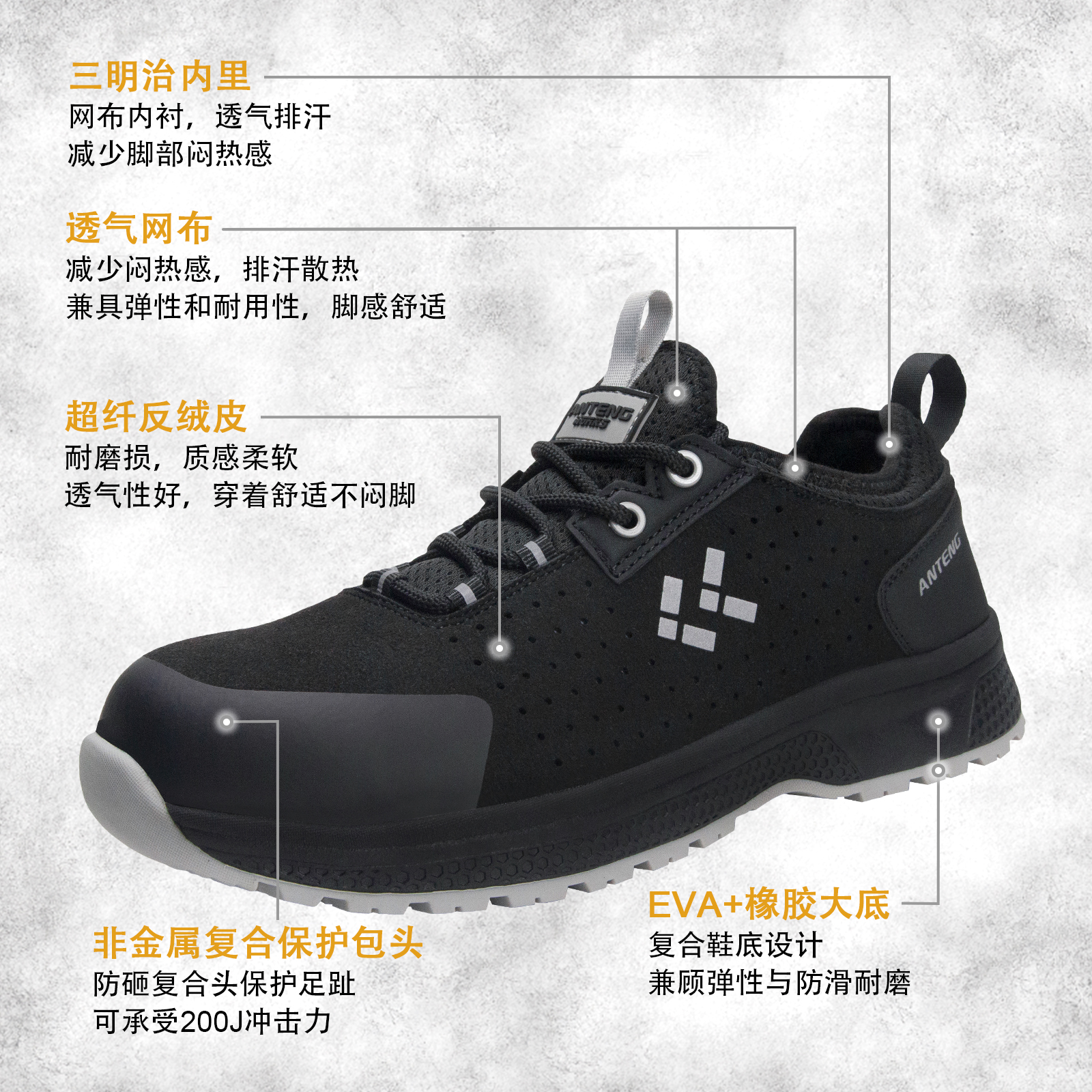 ANTENG 保护钢头工业安全鞋工作鞋PU大底四季款