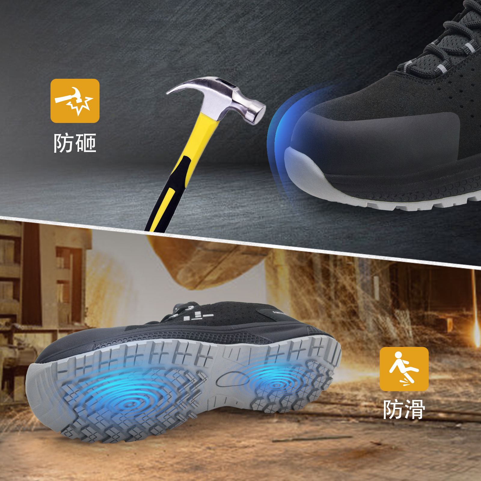 ANTENG 黑色防滑 水牛皮保护足趾防刺穿抗静电防水工作靴安全靴